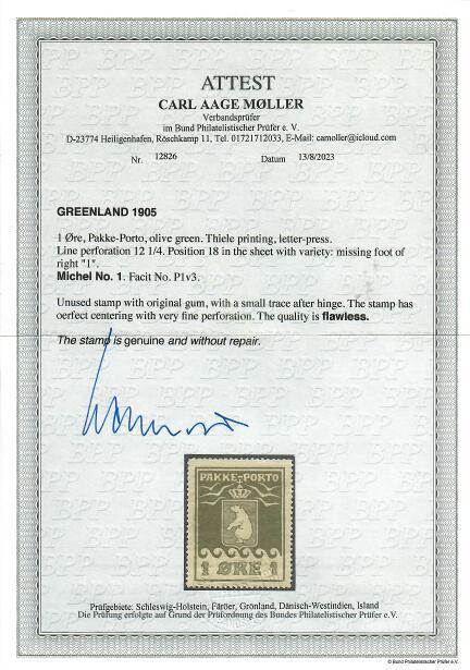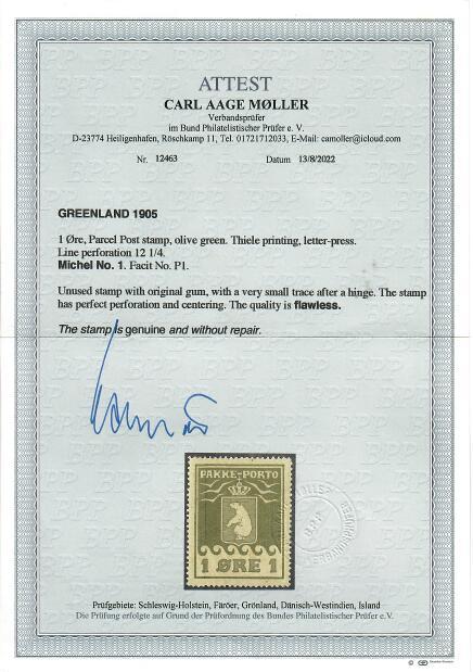 line canc GRÖNLAN(DS STYRELSE), cert LN: very fine, F 9000