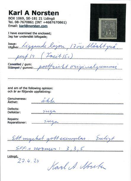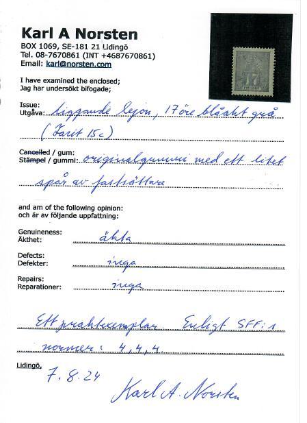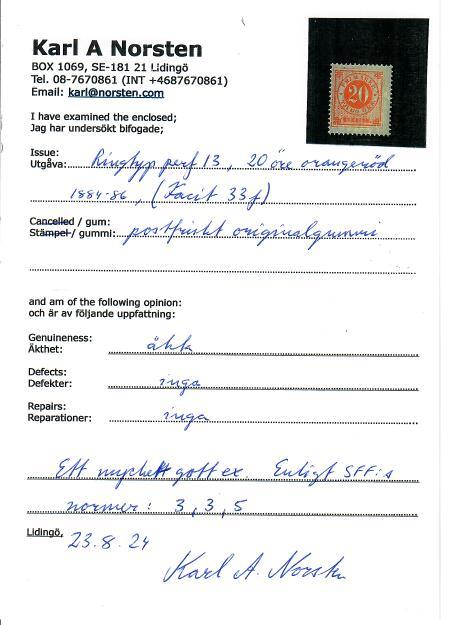 ** cert Norsten: mkt gott ex 3,3,5. F 12000