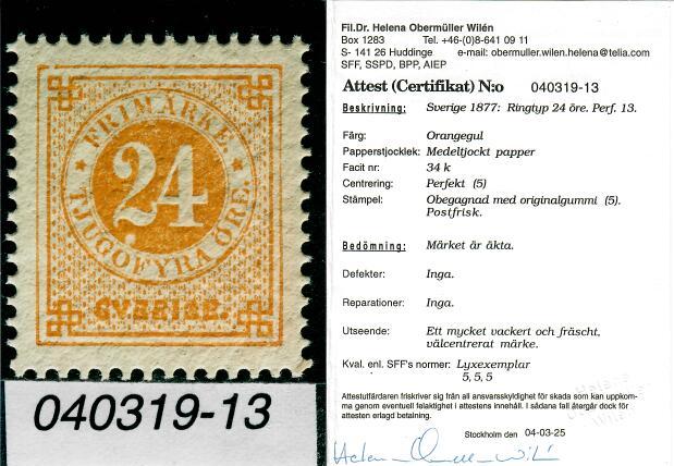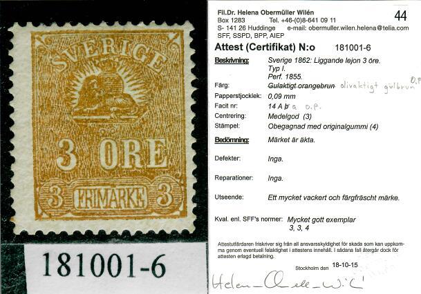 *(*) 3ö gulakt brun, cert Norsten: mkt gott ex 3,3,4. F 10000