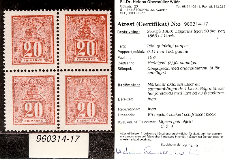 ** cert HOW: postfriskt, mkt gott ex 3,3,5. F 9500