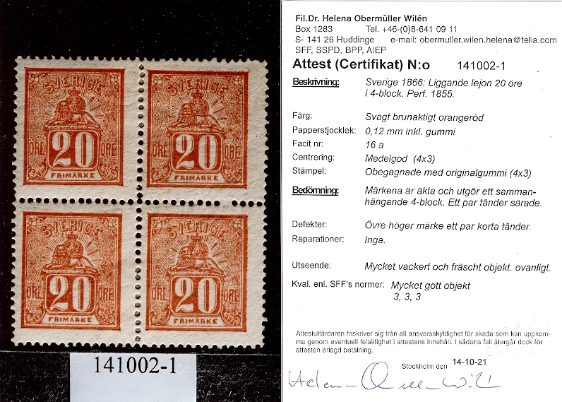 * 4-BLOCK, cert HOW: fräscht, ovanligt, mkt gott objekt 3,3,3. F 28000.