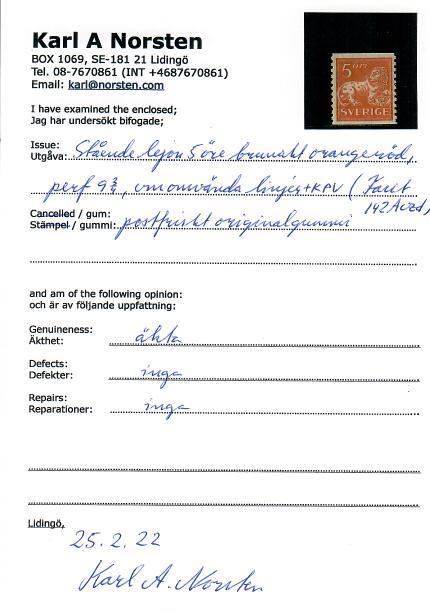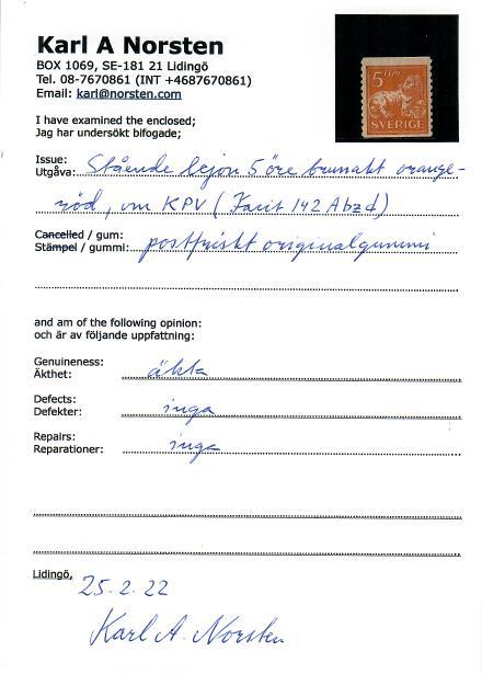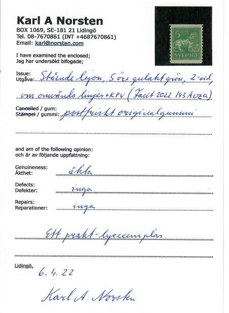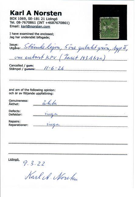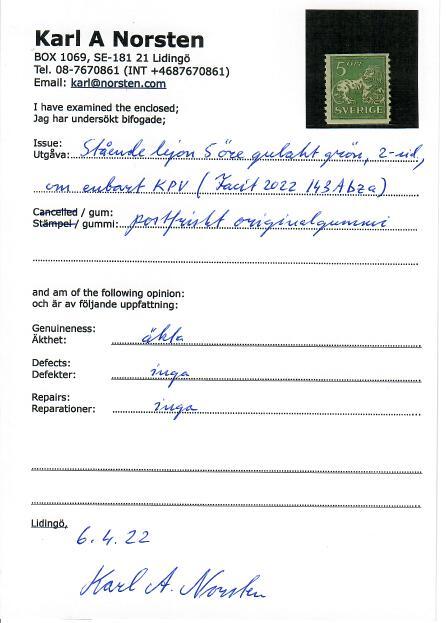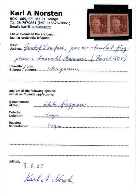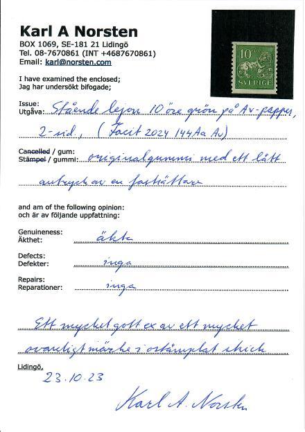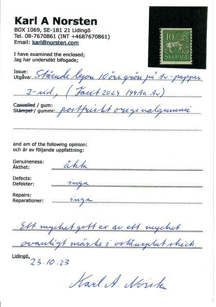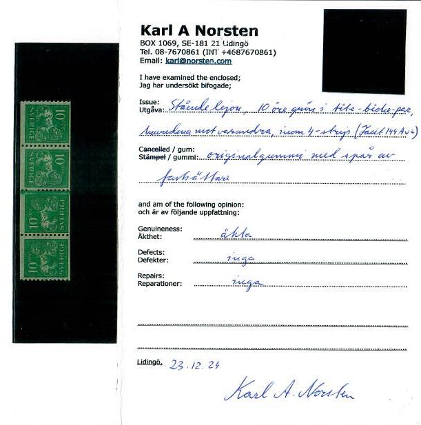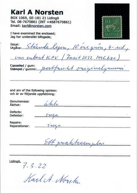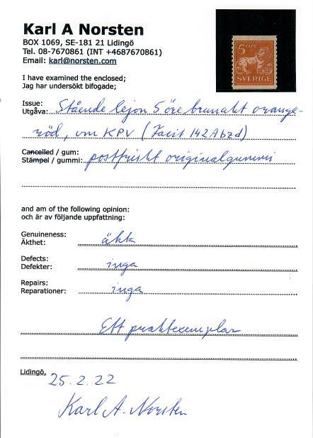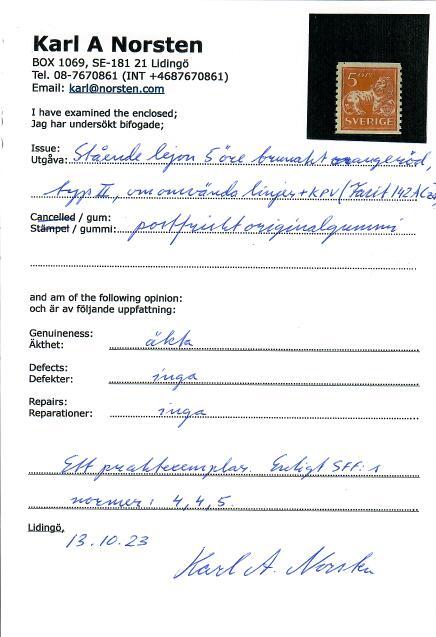 ** mkt gott, postfriskt ex, cert Norsten, Raritet.